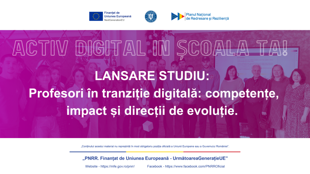 Asociația GO-AHEAD anunță lansarea studiului „Profesori în tranziție digitală: competențe, impact și direcții de evoluție”, realizat în cadrul proiectului „ACTIV DIGITAL în școala ta!”, finanțat prin Planul Național de Redresare și Reziliență.